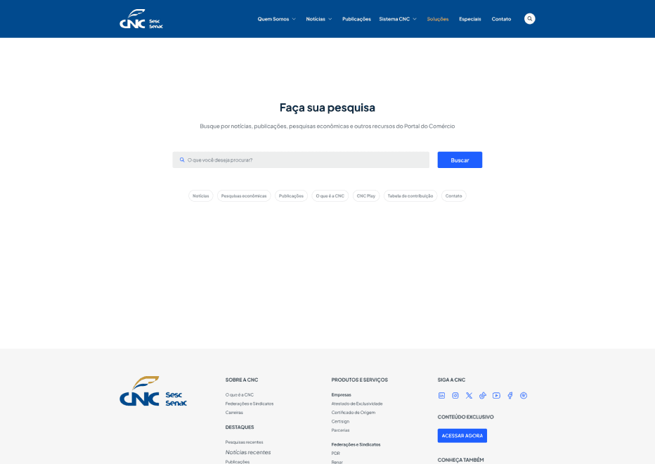 Como redesenhar o portal para torná-lo intuitivo, moderno e funcional, refletindo a credibilidade da CNC e permitindo que os usuários encontrassem rapidamente o que procuram?