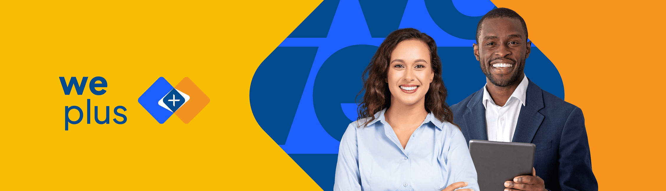 Criação do logo e da identidade visual do We Plus, desenvolvidos para traduzir visualmente o conceito de simplicidade, colaboração e fluidez proposto pelo projeto.