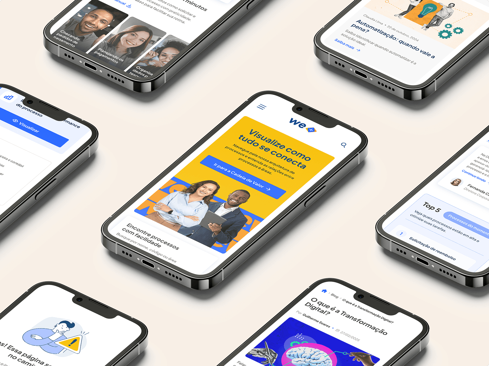 O principal desafio do projeto foi tornar a busca por processos simples e rápida, permitindo que qualquer colaborador localizasse facilmente o que precisava, sem depender de orientações verbais ou caminhos pouco claros. Além disso, o projeto buscou promover clareza sobre as responsabilidades e interfaces entre áreas, evidenciando a interdependência dos processos dentro da organização. Outro ponto essencial foi encontrar uma forma de engajar os usuários com uma comunicação leve, visual e didática, transformando um tema técnico e, por vezes, burocrático, em uma experiência amigável, intuitiva e próxima.